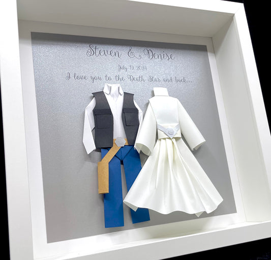 Personalized Star Wars Wedding/ Anniversary Art in Frame with Hans Solo & Princess Leia, Star Wars Valentine's Day Gift
