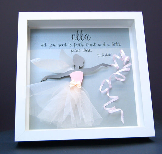 Personalized Baby Girl Name Frame with Fairy Tinkerbell & Pixie Dust