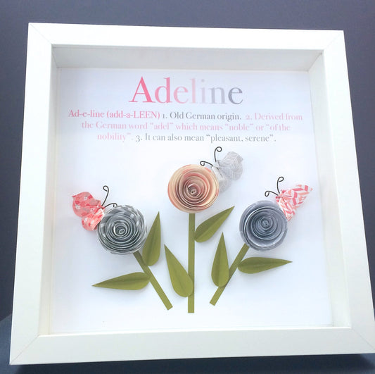 Personalized Baby Girl Name Frame with Paper Roses & Butterflies