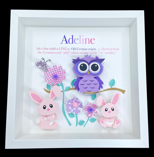 Personalized Baby Name Frame with Woodland Theme of Owls & Bunnies