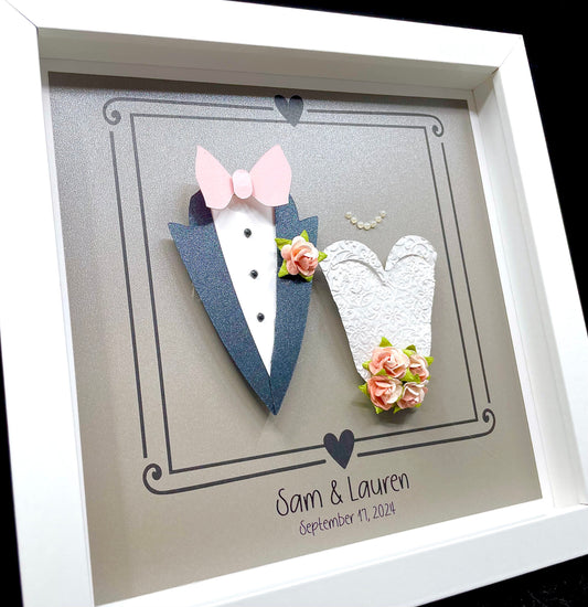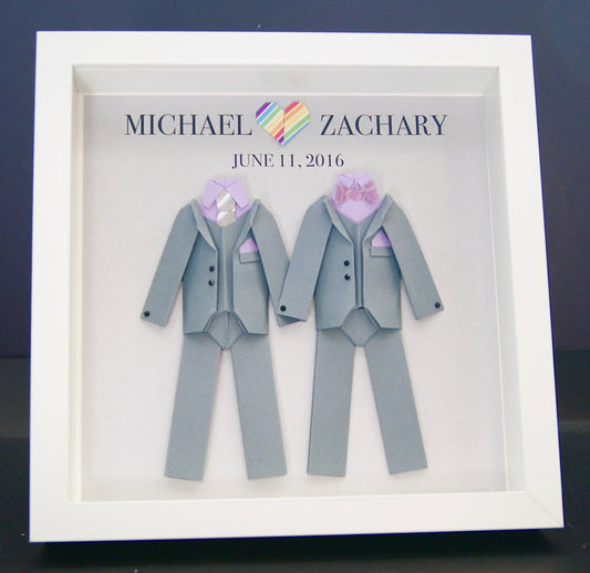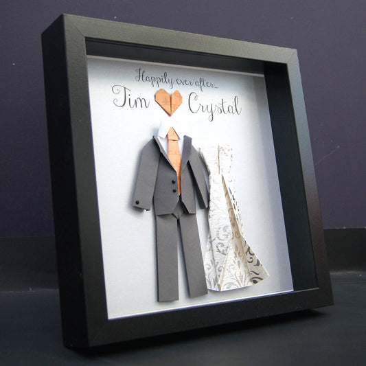Personalized Bride and Groom Frame, Paper Anniversary Gift, First Anniversary, Wedding Gift, Origami Bride & Groom, Two Brides or Two Grooms