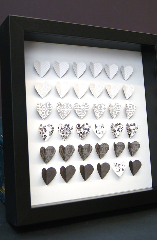 Personalized Wedding Heart Frame, First Anniversary Gift, Paper Anniversary, Wedding Ombre Hearts, Custom Heart Print, Gift for the Couple,